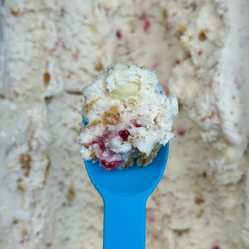Raspberry jam, oat crumble, and white chocolate pieces (gluten free)